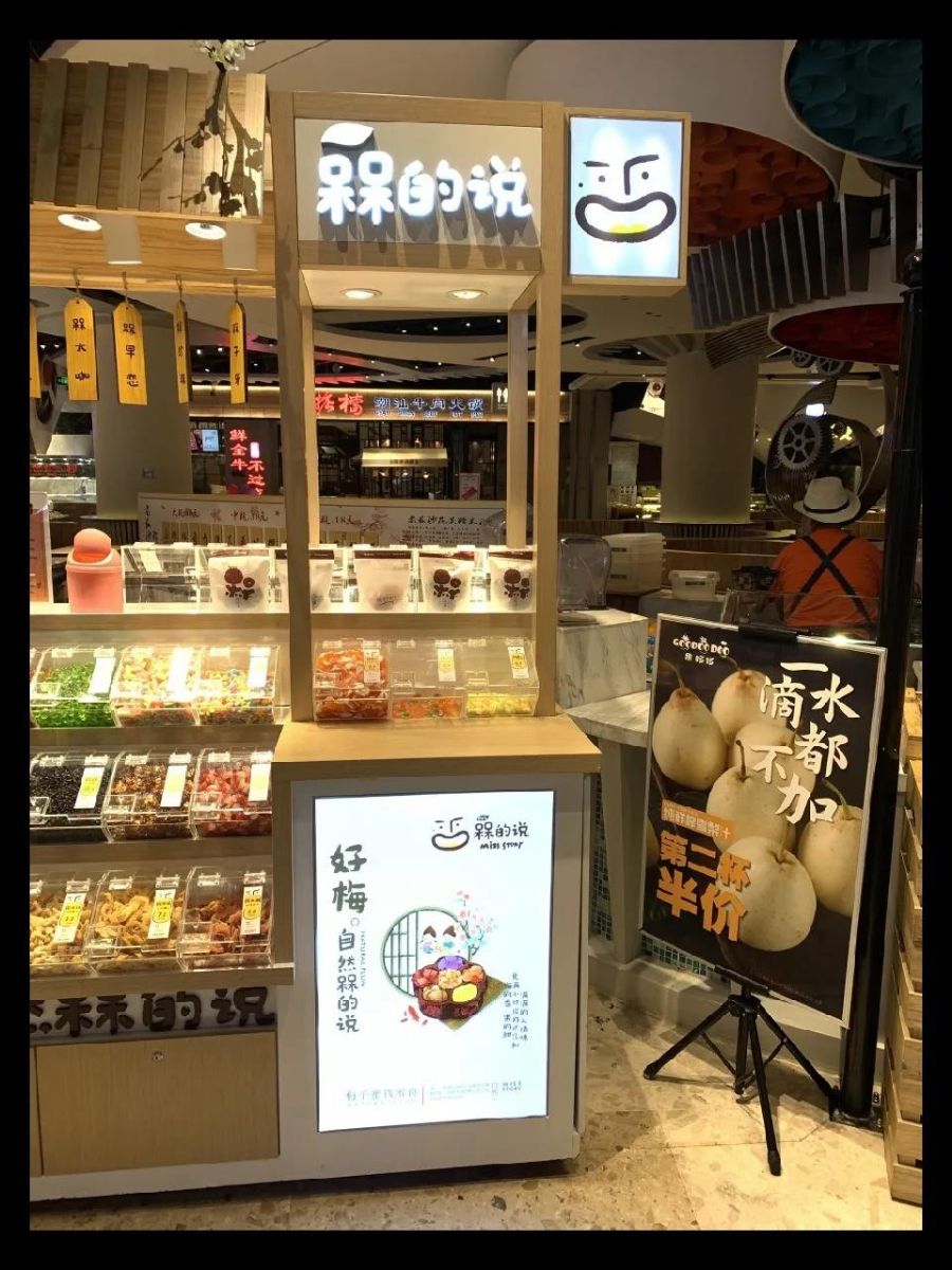 “槑的说”是一家专门卖蜜饯肉干的零食店。“槑”这个字念méi,不认识这个字的朋友们可能会戏读它为“呆呆的说”,这种富有喜感的解读,作为一个“梗”流传开来,也会增加品牌的关注度。