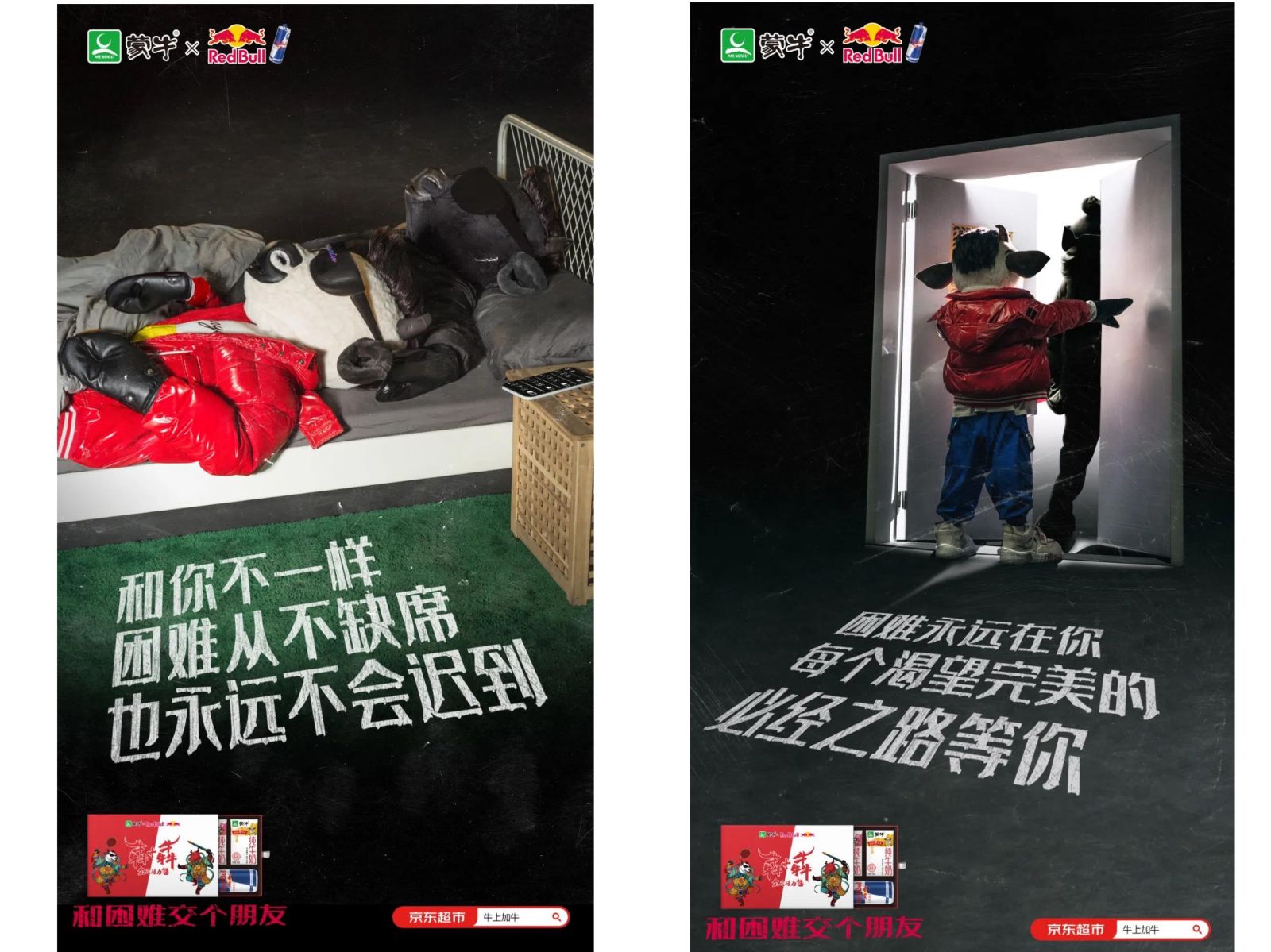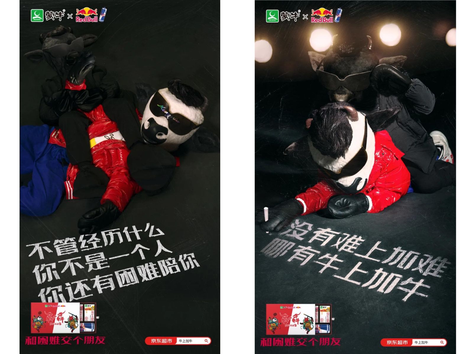 两只牛是两个品牌人格化的体现,在过去难上加难的一年中,他们共同步入了牛上加牛的新年。不过,在视频中,观众却没有办法在外观上具体区分哪个是蒙牛,哪个是奥地利红牛。
