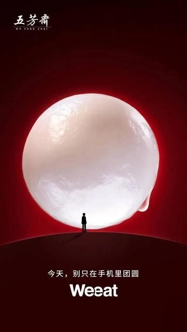 模仿微信的开机页面,远看是月亮,近看是汤圆。用“Weeat”替代“Wechat”呼吁人们在元宵节的时候,别只在手机里团圆,还要记得多回家看看。