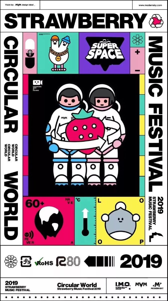 草莓音乐节是国内最大规模的音乐节,它由国内音乐厂牌摩登天空于2009年一手创办。现如今它早已成为一种生活方式,更是当代中国年轻人的生活态度。音乐节的海报都由摩登天空的当家工作室——MVM design label进行设计。