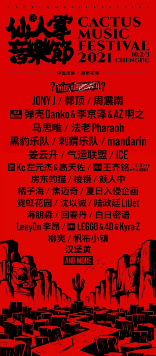 热烈的「红」一直是仙人掌音乐节的主视觉色调。海报上的「红」更是象征着肆无忌惮绽放的青春、如风似火沸腾的热血、不顾一切奔赴的梦境,甚至理想主义般的纯粹。(现在看来,有点讽刺了。)