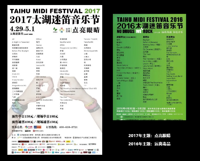 我们可以从每一年的海报设计和整体手法来看,画面上看似漫不经心,却处处藏有小玄机,比如不同的主题,不论咖位大小的排名......在这里没有流量,只有摇滚本身!难怪迷笛地位这么高,果然是真性情。