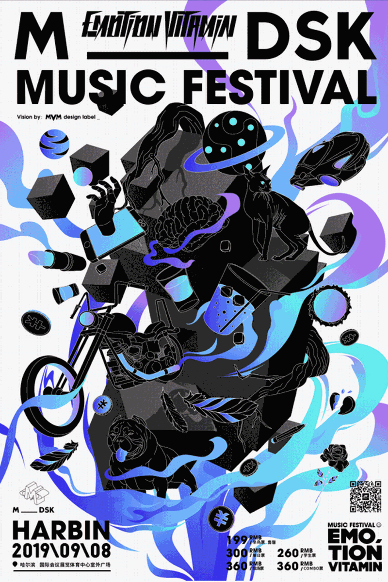 M_DSK音乐节——国内首个大型户外说唱音乐节。它的海报设计很有欧美文字编排的风格。