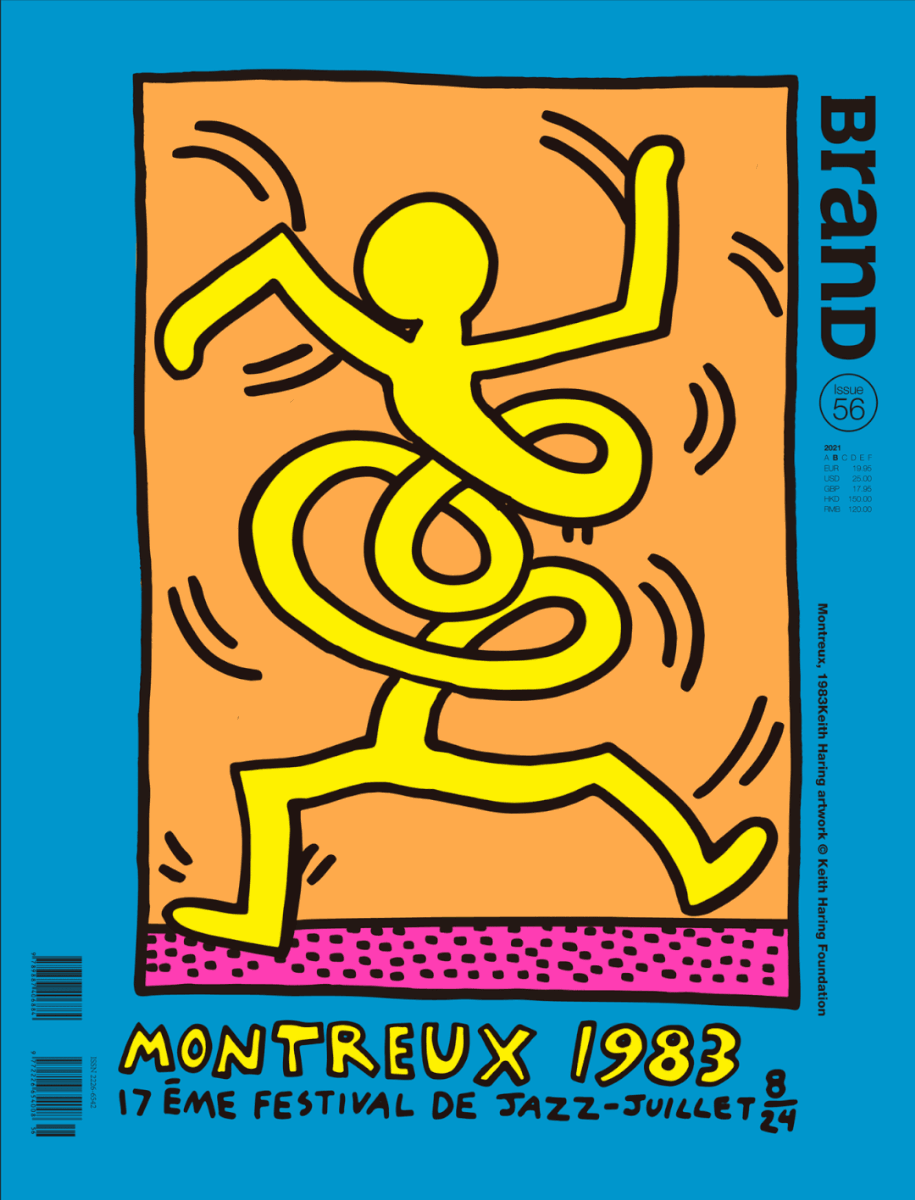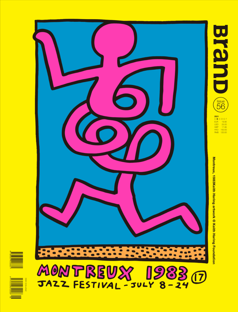 蒙特勒爵士音乐节始于1967年,历来视觉海报都是由艺术家设计的,包括Keith Haring、Andy Warhol、David Bowie等等。而BranD最新一期的杂志封面就是Keith Haring于1983年为蒙特勒爵士音乐节设计的作品。