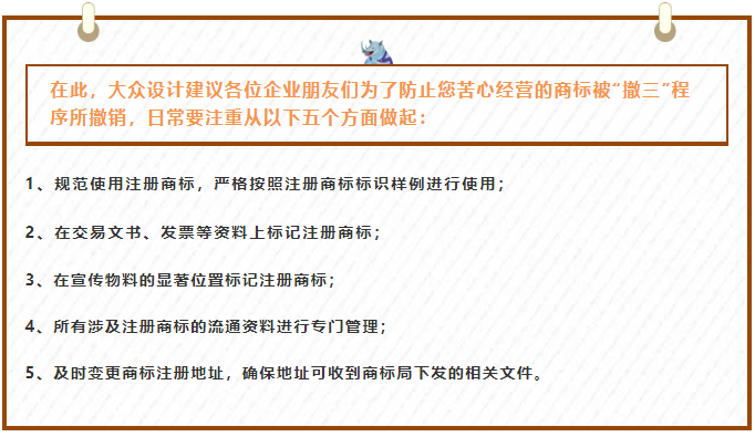 之所以发这篇文章是为了给关注大众设计的朋友们提个醒,不要因为公司对商标管理的疏忽而丢掉了辛辛苦苦申请下来的注册商标。