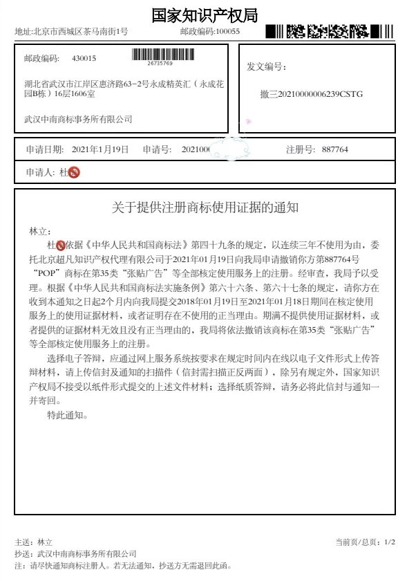 一直以来大众设计都很注重“POP”这个商标的使用,所以在提交了相关证据资料后,很快便得到了国家知识产权局“不予撤销”的回复。