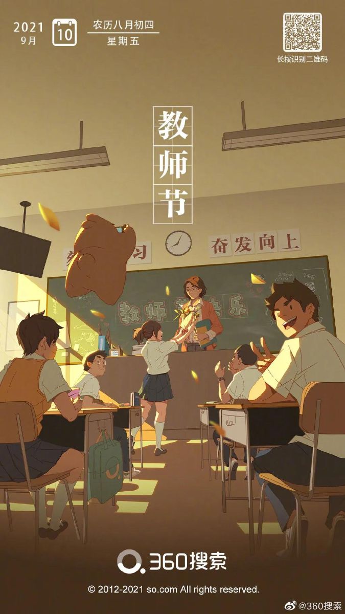 亚运会这版教师节海报增加了元素的创意