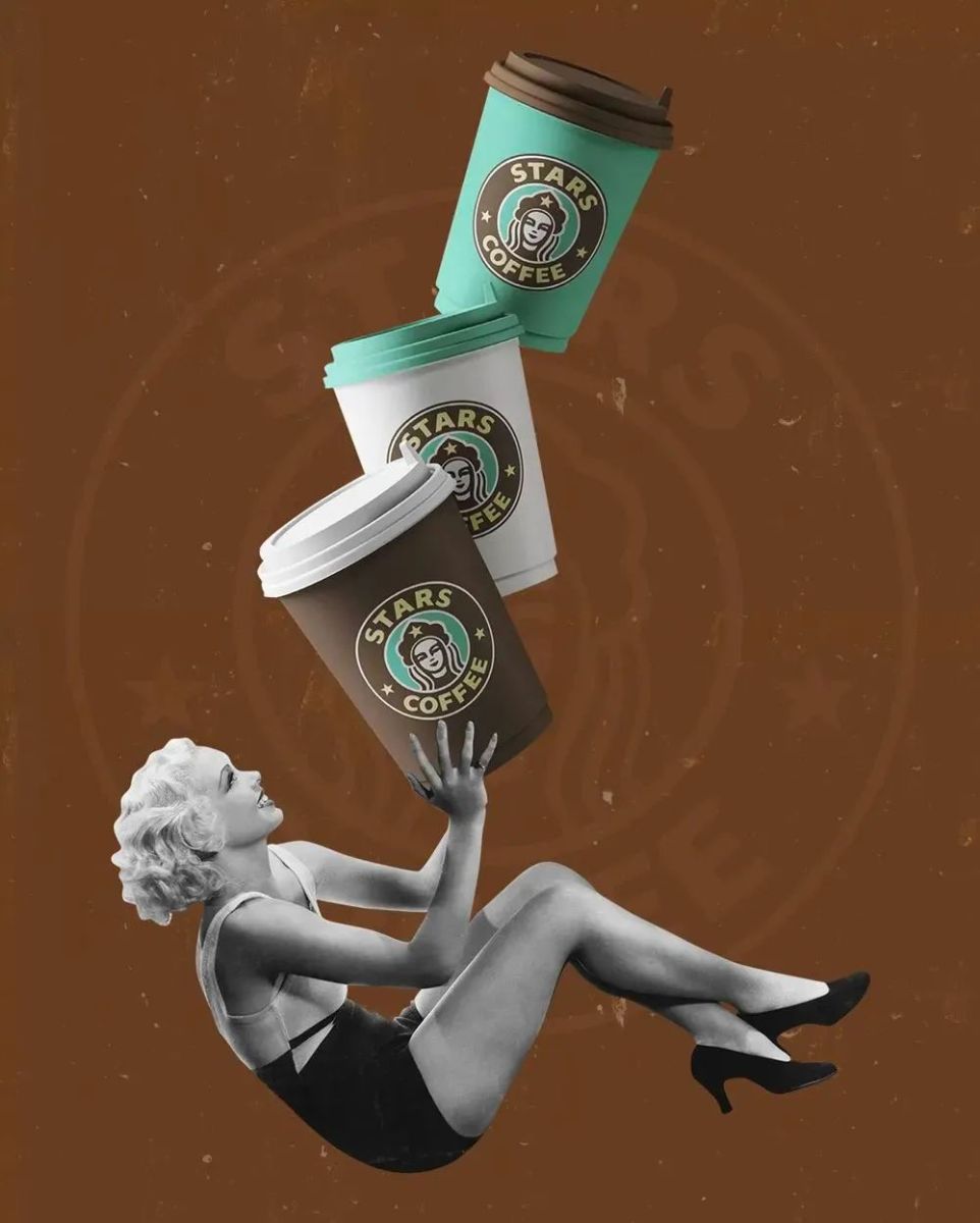 此外我们可以看到,星巴克品牌Logo中基于希腊神话的塞壬女妖延伸设计的“双尾美人鱼”图案,在Stars Coffee的品牌Logo中则被替换成了一个头戴俄罗斯传统头饰kokoshnik(尕古什尼)的女性形象。