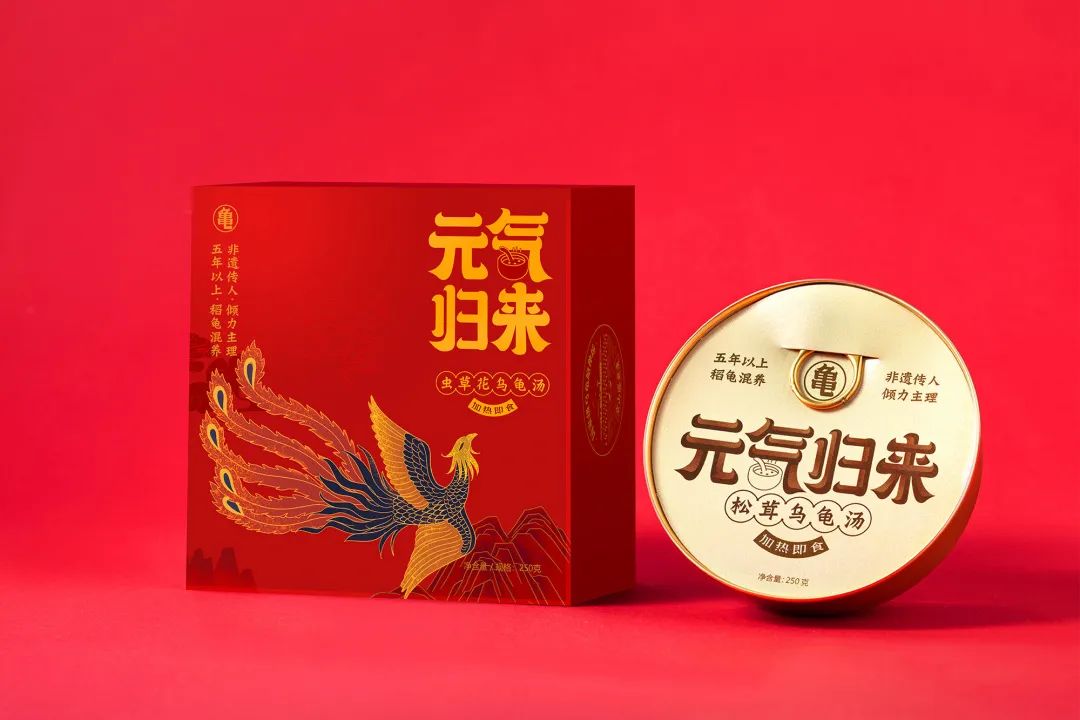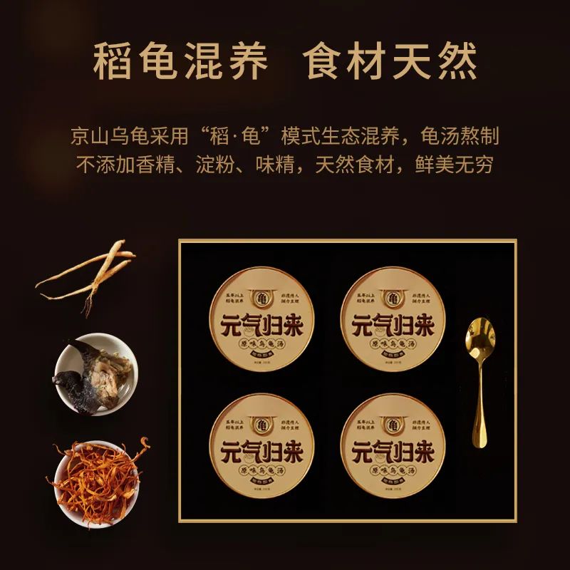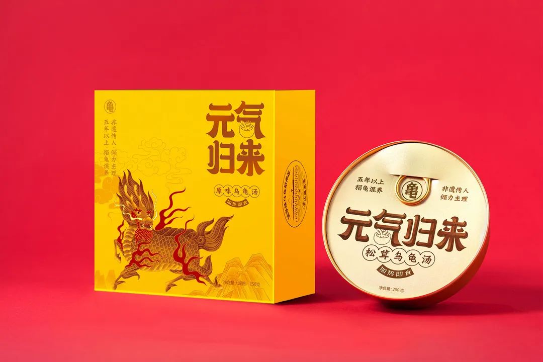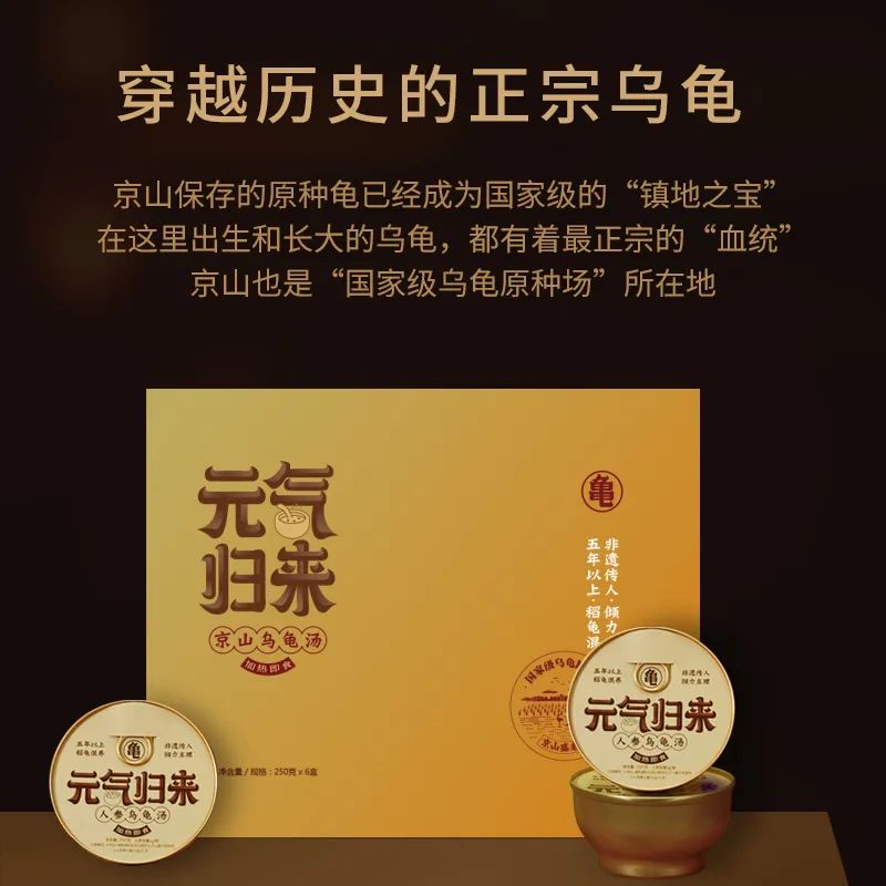 元气归来——京山乌龟汤。从产品命名开始我们就在做品牌形象占位,突出产品特色,强调农产品地理标志。