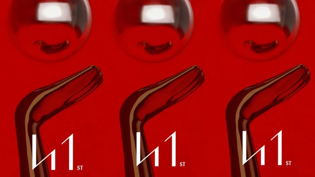 还有另外一款,通过特写镜头的形式展现女神的手部动作细节,选取了手和明珠部分的画面,红色背景下的奖杯光泽,优雅而热烈。