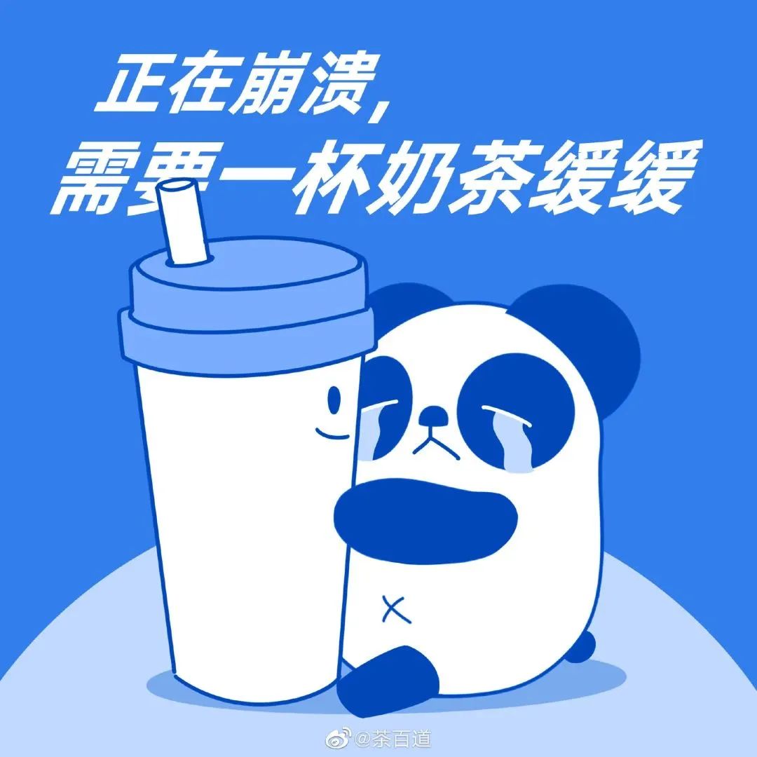 本次,茶百道官方发布了“一只喝茶的熊猫”的全新“丁丁猫”形象,正式上位成为茶百道品牌图腾。手捧茶杯与吸管的蓝色熊猫形象,通过消费者们亲切熟悉的丁丁猫与场景化的新扮相,更加简洁、直观地传达了“一杯好茶”的品牌诉求,既是对过去经典的回归,又是对未来愿景的重塑。