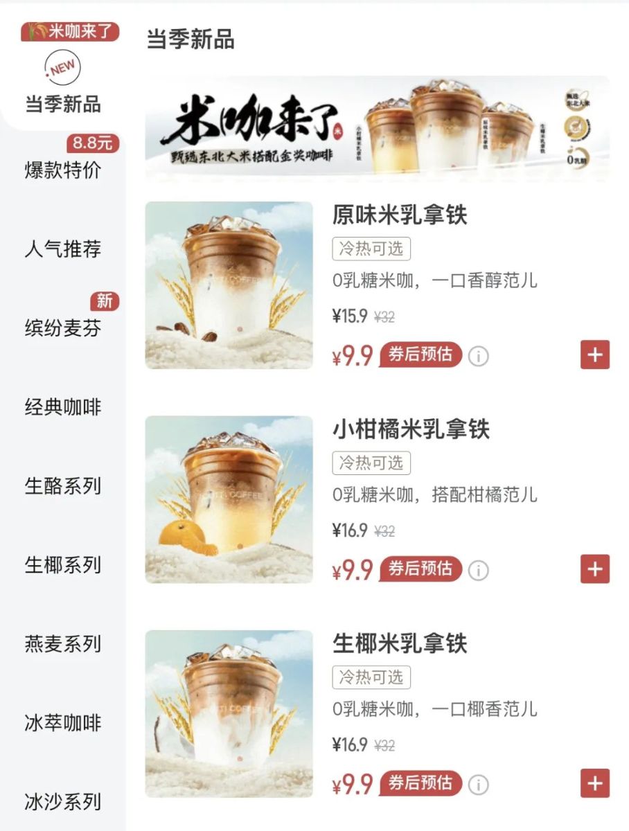 不就是联名吗?库迪想了一招,既然咖啡奶茶化,奶茶八宝粥化,那我们就直接合并同类项,把咖啡八宝粥化,顺便用米乳拿铁玩一下同根同源梗,强调下自己的“父亲”地位。