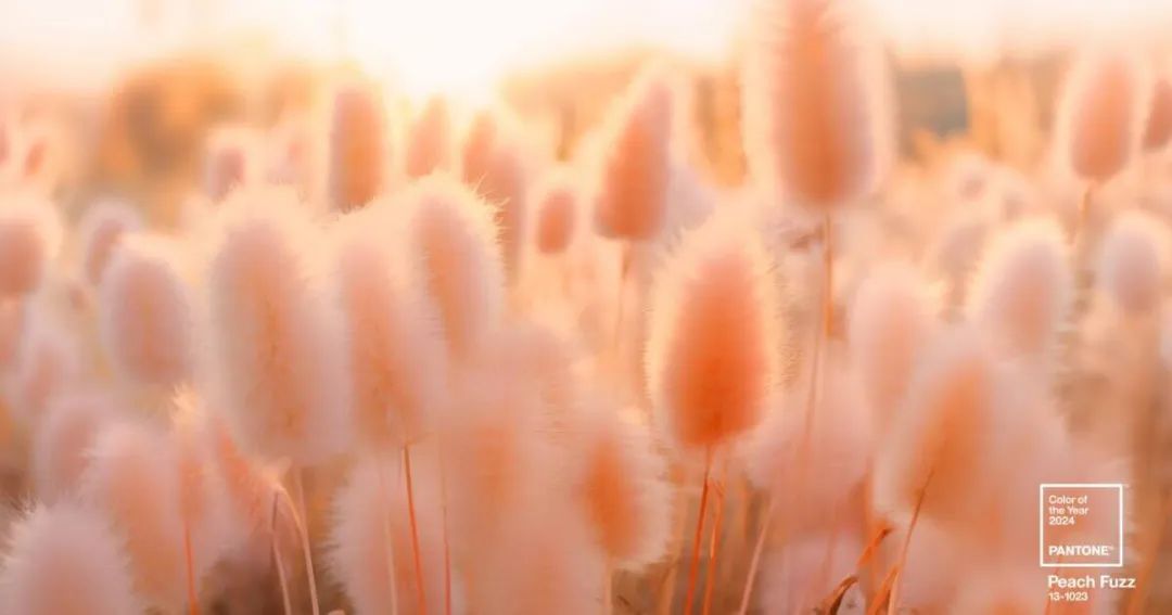 PANTONE 13-1023 Peach Fuzz 是一种舒适温馨的蜜桃色调,柔和地依偎在粉红色和橘色之间,作为我们一个2024年度色彩感官的礼物,在我们的味觉、视觉、触觉和气味之间创造了共生关系。