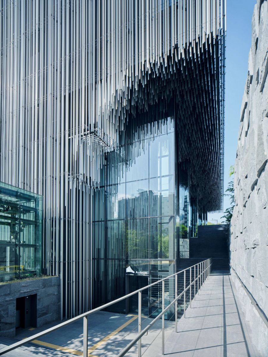 作为首尔全新的重量级地标建筑,Audeum音响博物馆的建筑空间设计邀请了日本知名建筑师隈研吾负责,用2万根铝管打造出极具特色的流苏建筑立面。